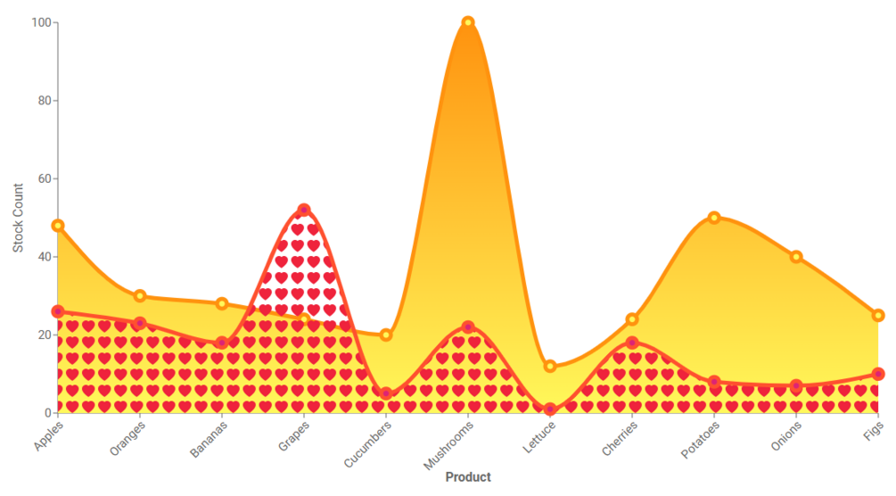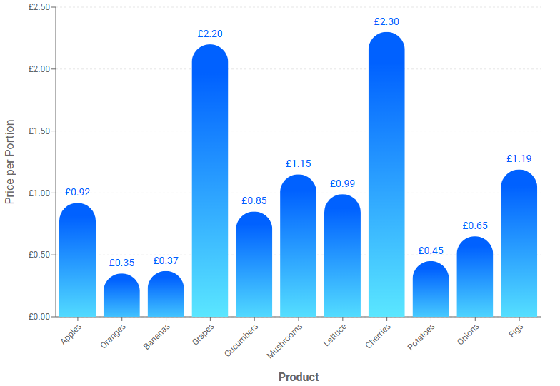 Rounded Bar Chart with Gradient Fills and Cell Overrides for Bananas and Potatoes!